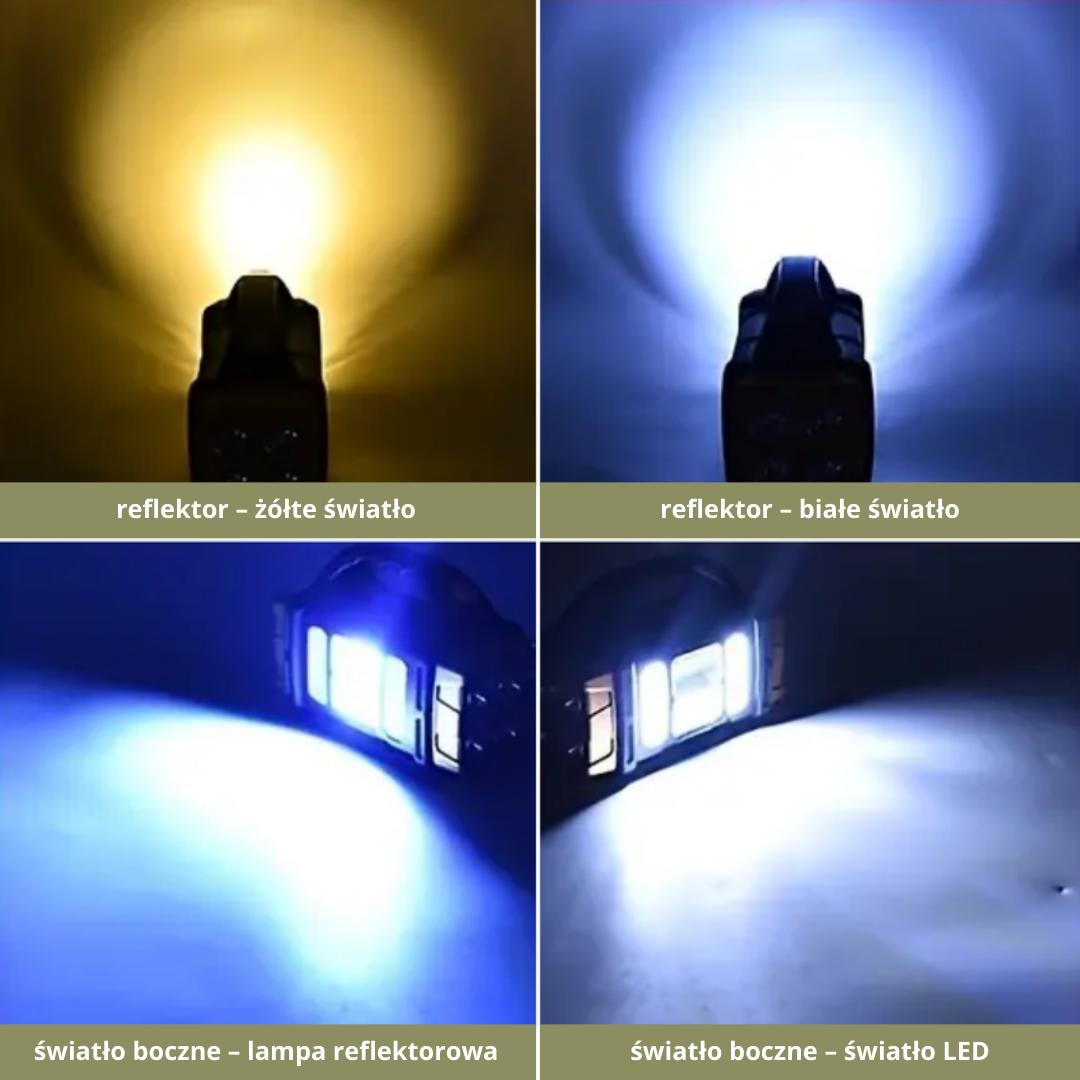 - Barwa światła: Żółta (COB) i biała (LED)