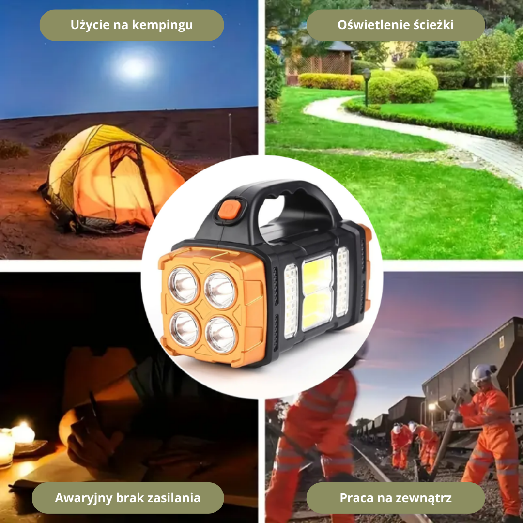 - Wszechstronny design 4-w-1: To wielofunkcyjne urządzenie działa jako latarka, lampa ręczna, powerbank i ładowarka słoneczna, zapewniając gotowość na każdą sytuację.