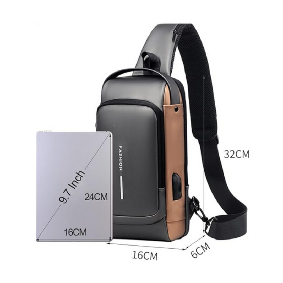 Antykradzieżowa torba na klatkę piersiową – USB – Zamek szyfrowy
