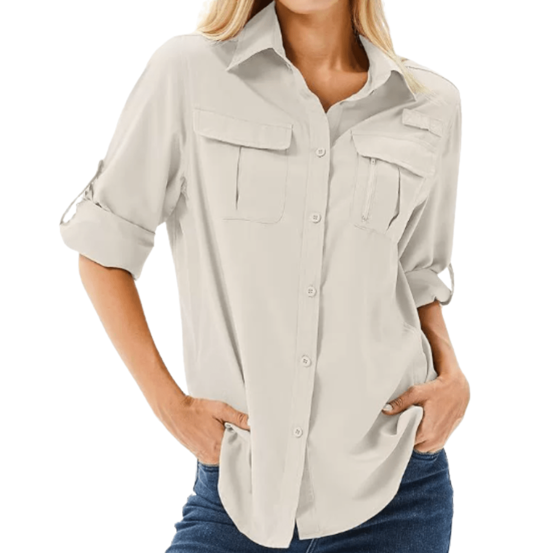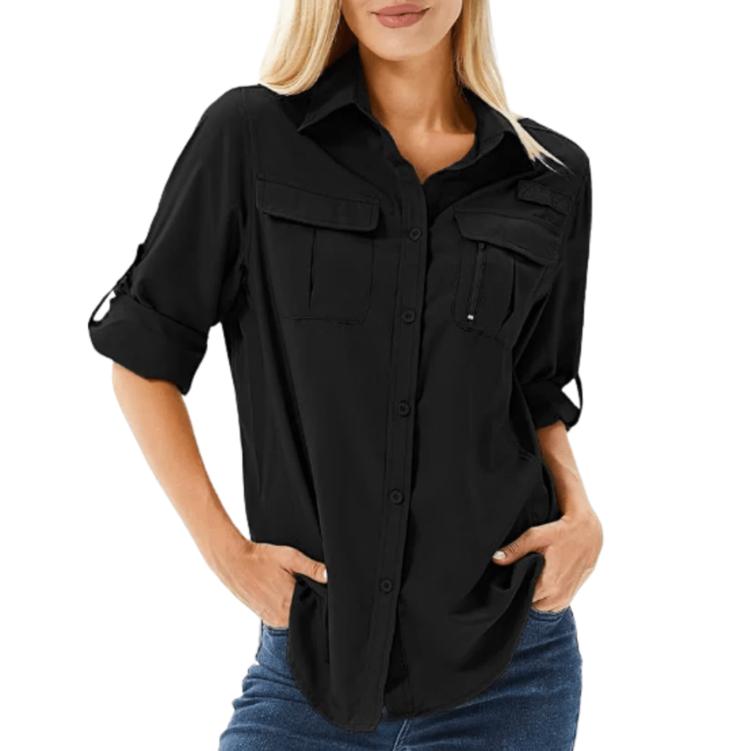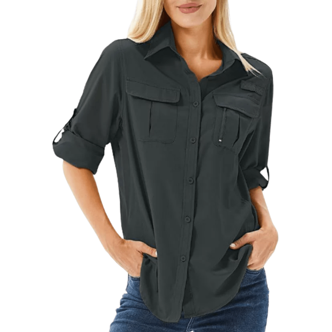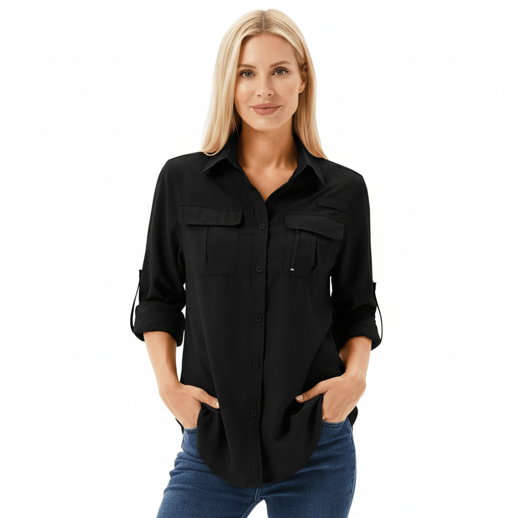 Funkcjonalna koszula outdoorowa dla kobiet, zaprojektowana z myślą o komforcie podczas aktywności w ciepłych warunkach. Lekki, szybkoschnący materiał zapewnia dobrą wentylację oraz ochronę przed słońcem podczas długiego przebywania na świeżym powietrzu. Praktyczne kieszenie i klasyczne zapięcie na guziki sprawiają, że koszula doskonale sprawdzi się podczas trekkingu, wędkowania czy długich spacerów.