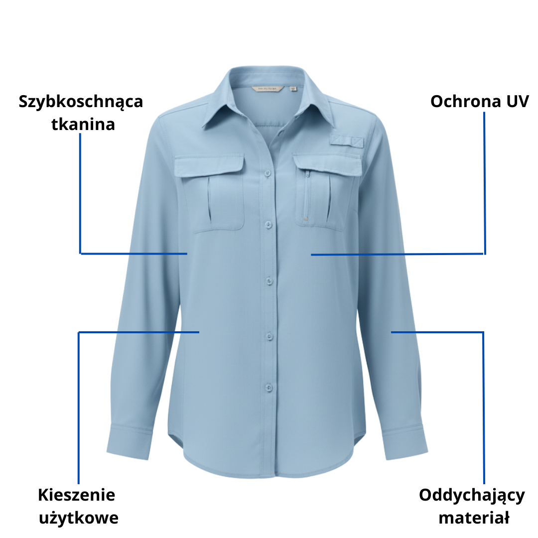 Damska oddychająca koszula trekkingowa z długim rękawem – Lekka i szybkoschnąca