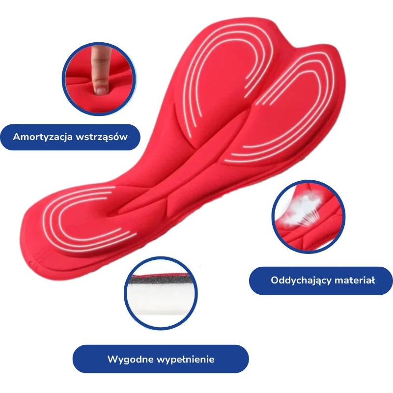 - 4D żel: Zaawansowana wkładka żelowa 4D amortyzuje wstrząsy i zapewnia komfort nawet na wyboistych trasach.