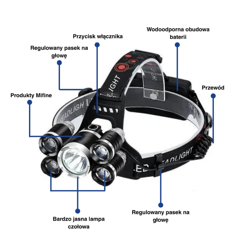 - Ładowanie USB: Zasilana przez USB latarka czołowa — oszczędność na bateriach.