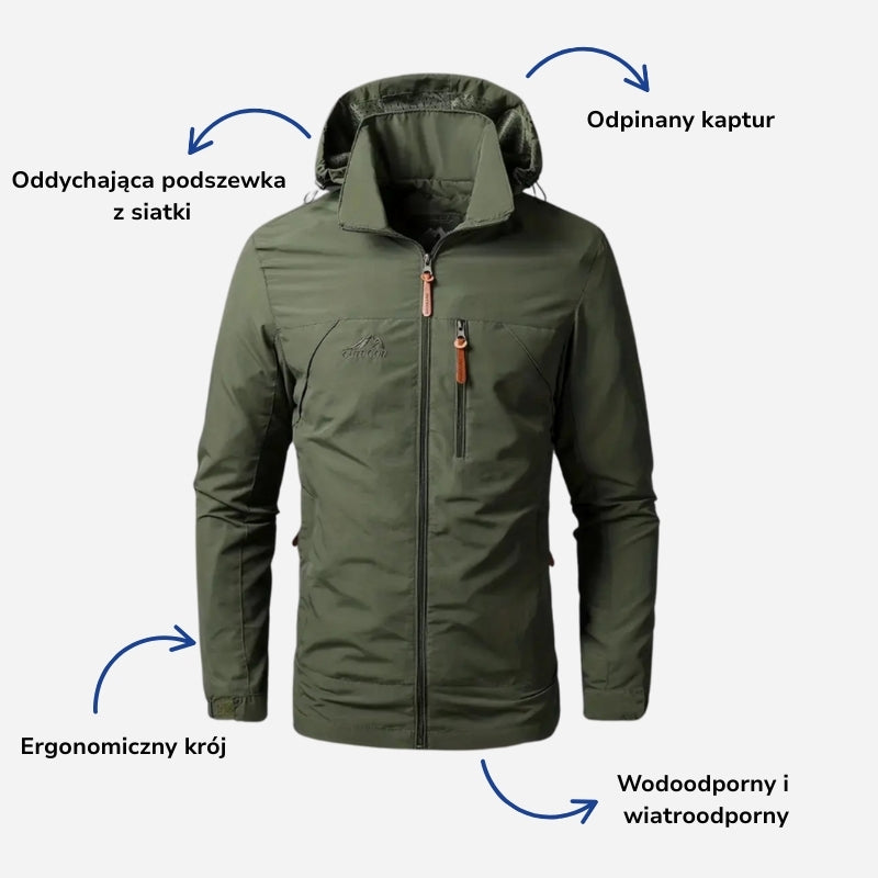 Męska wodoodporna kurtka z kapturem – Wiatroszczelna i lekka