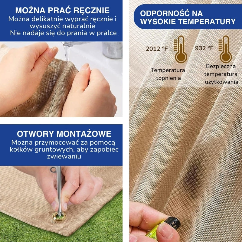 - Wysokiej jakości materiał: Wykonana z ognioodpornego włókna szklanego, odporna na temperatury do 800°C.