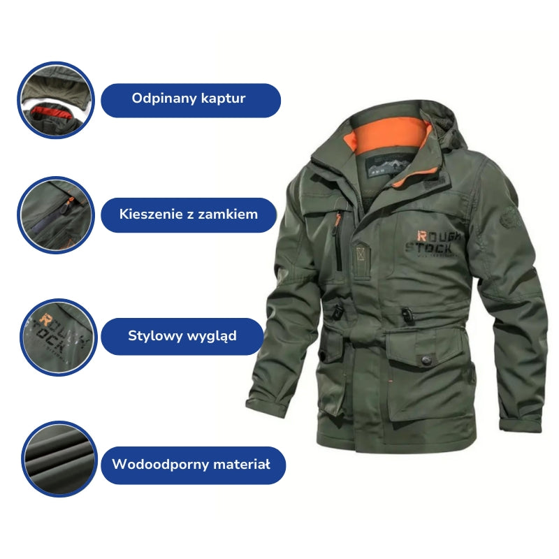 - Kaptur: Odpinany, regulowany dla lepszej ochrony