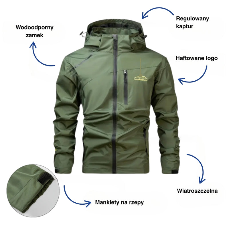 Męska wodoodporna kurtka z kapturem – Wiatroszczelna i lekka