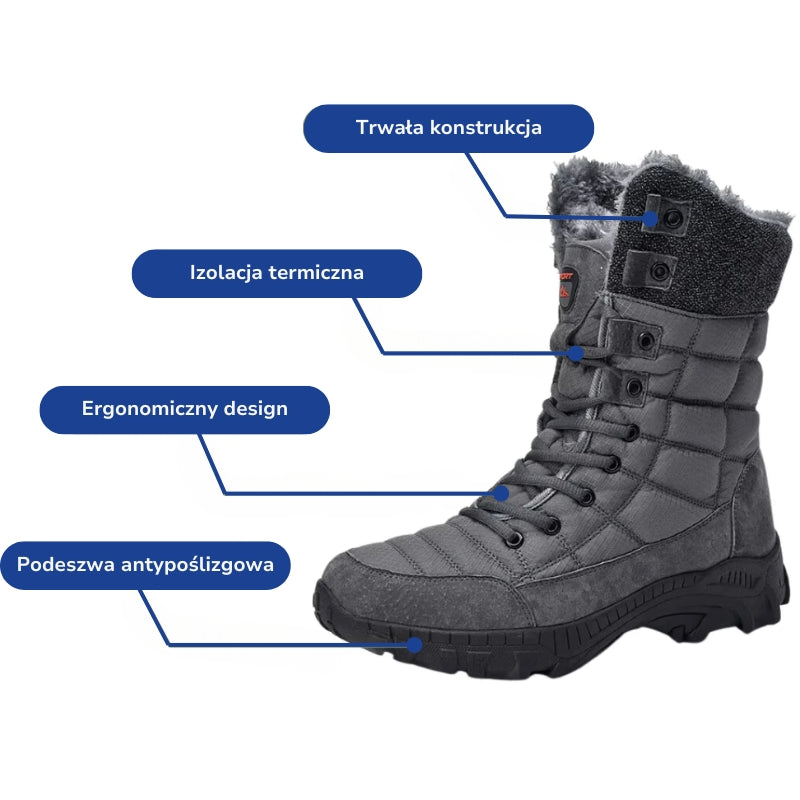 - Izolacja: Wysokiej jakości termiczna wyściółka utrzymuje stopy w cieple przy niskich temperaturach.