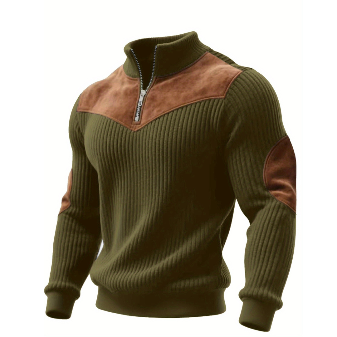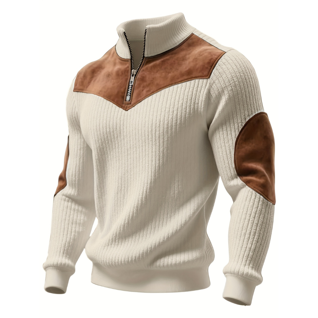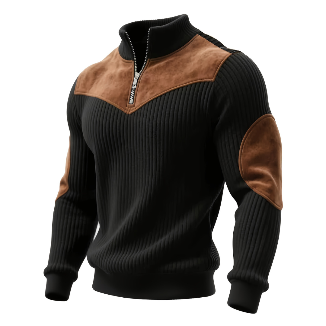 Sweter męski z zamkiem i skórzanymi wstawkami